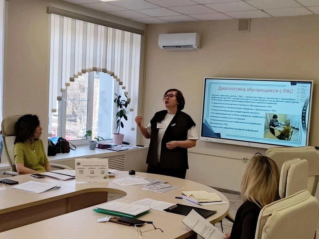 Коллеги транслировали опыт работы по проведению комплексного психолого-медико-педагогического обследования в условиях ТПМПК. Участники семинара получили пакет раздаточных материалов, который может быть использован в работе с детьми с расстройствами аутистического спектра и консультировании родителей.